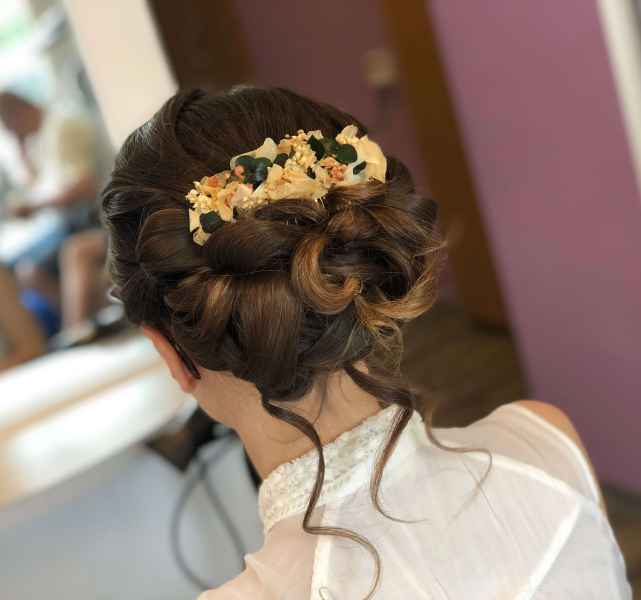 Forfait mariée essai + chignon jour « J » Cheveux longs 130€